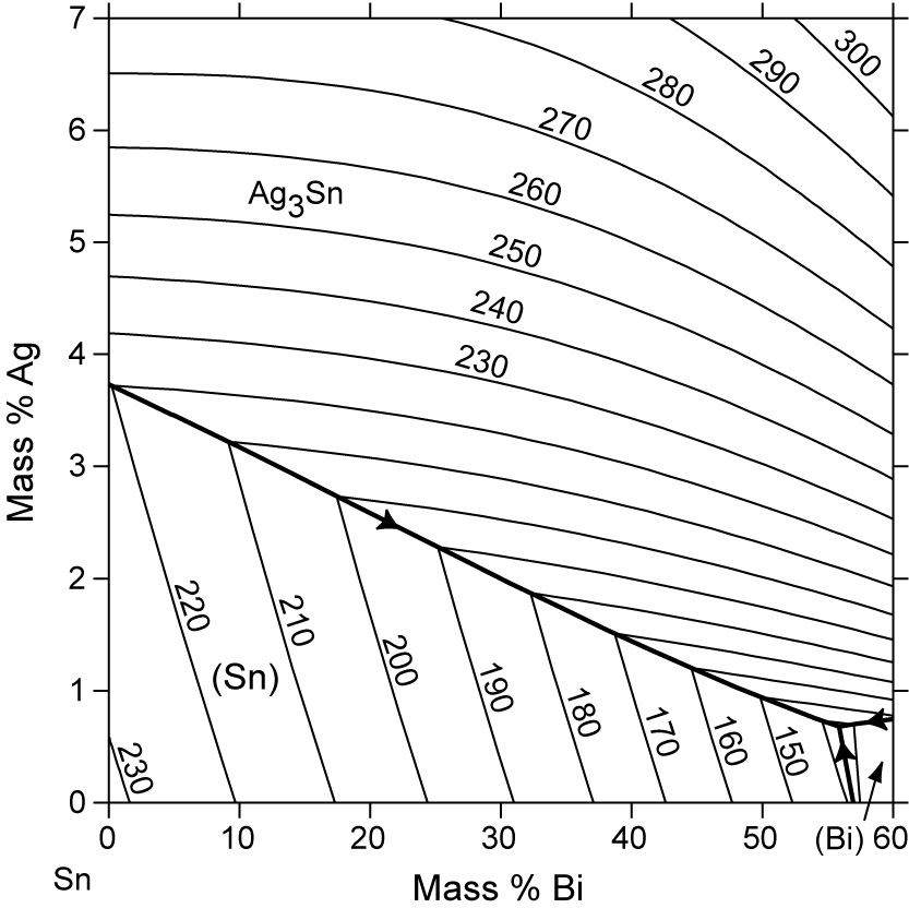 | L -> (zeta Ag) + Ag3Sn + (Bi)